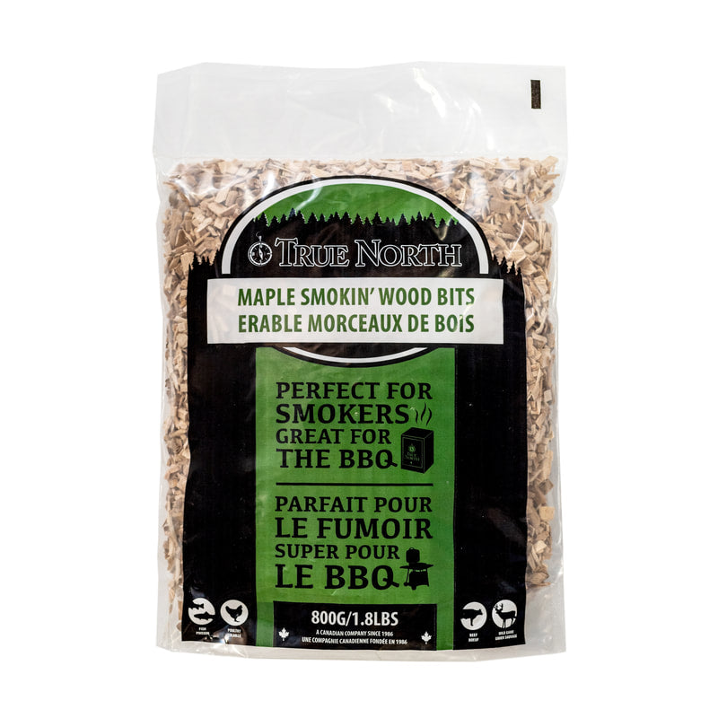 Our True North flavoured Wood Bits (designed for food smokers) are specially chipped and dried in smaller chunks. Our products are 100% wood (no fillers) and made from top quality Hickory, Mesquite, Maple, Alder, Apple and Cherry for the finest in smoke flavouring.